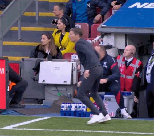 直播画面显示,最后时刻对利物浦打入制胜入球后,格拉斯纳欣喜若狂,准备狂奔到场内与球员一起庆祝,但半路突然折返,最终还是回到教练席与同事拥抱欢庆。