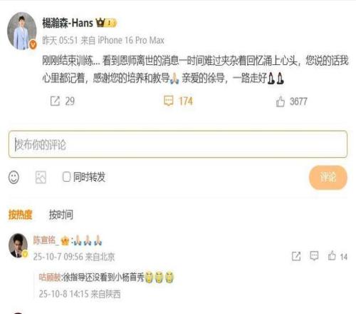 世事难料,距离杨瀚森NBA(季前赛)首秀只有几天的时间,徐指导溘然长逝,真的很让人意难平。希望杨瀚森带着徐指导的嘱托和期盼,化悲痛为力量,可以在NBA走得更远。
