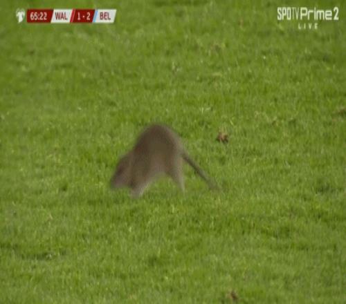 球员们对此也颇感无奈,比利时国门库尔图瓦也尝试驱赶这只小老鼠但未能奏效。