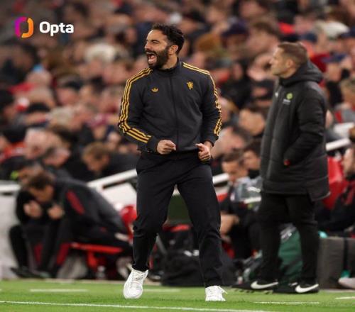 英超第8轮,曼联客场2-1击败利物浦,阿莫林成为第三位执教英超前2次客战卫冕冠军均取得胜利的主帅。