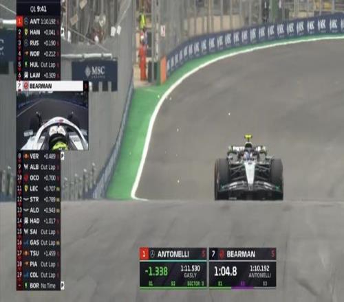 Q1首轮飞驰圈结束,安东内利暂居榜首,皮亚斯特里处于淘汰区;