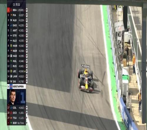 两台红牛先后冲线,角田排在第19,维斯塔潘只能排在第16,红牛双车Q1出局!!!