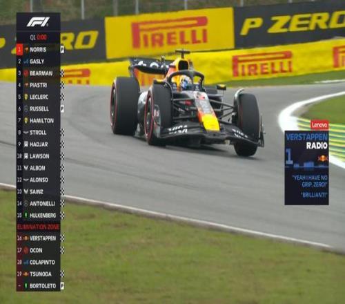 维斯塔潘再刷一圈,但成绩仍不理想,两台红牛仍处在淘汰区;