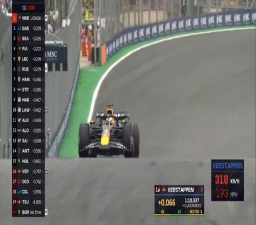 北京时间11月9日,F1巴西站排位赛结束。诺里斯夺得杆位,安东内利、勒克莱尔位居二三。皮亚斯特里第4,哈贾尔第5,拉塞尔第6,劳森第7,贝尔曼第8,加斯利第9,霍肯博格第10。汉密尔顿第13,红牛双车Q1出局,维斯塔潘第16,角田裕毅第19。