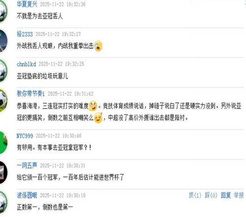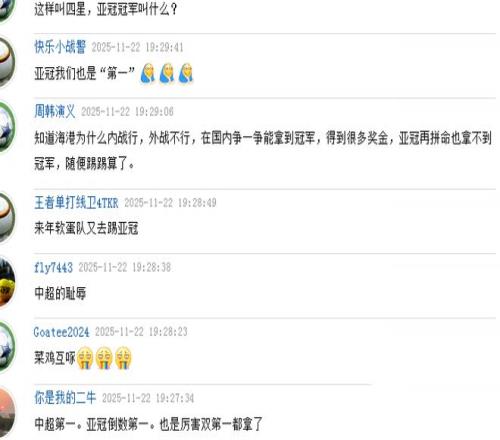 这边厢上港欢喜庆祝独乐乐,那边厢大部分的中超球迷却对此冷眼相看,口碑欠佳。评论区内两极分化,少数上港球迷高呼“我们是冠军”,更多的球迷不仅不祝贺,反而拿亚冠说事,为未来中超球队的亚冠名额和亚冠技术分担忧。随意截取了几段球迷的评论,就可以看出外界球迷是怎么看待海港这个“三连冠”的。